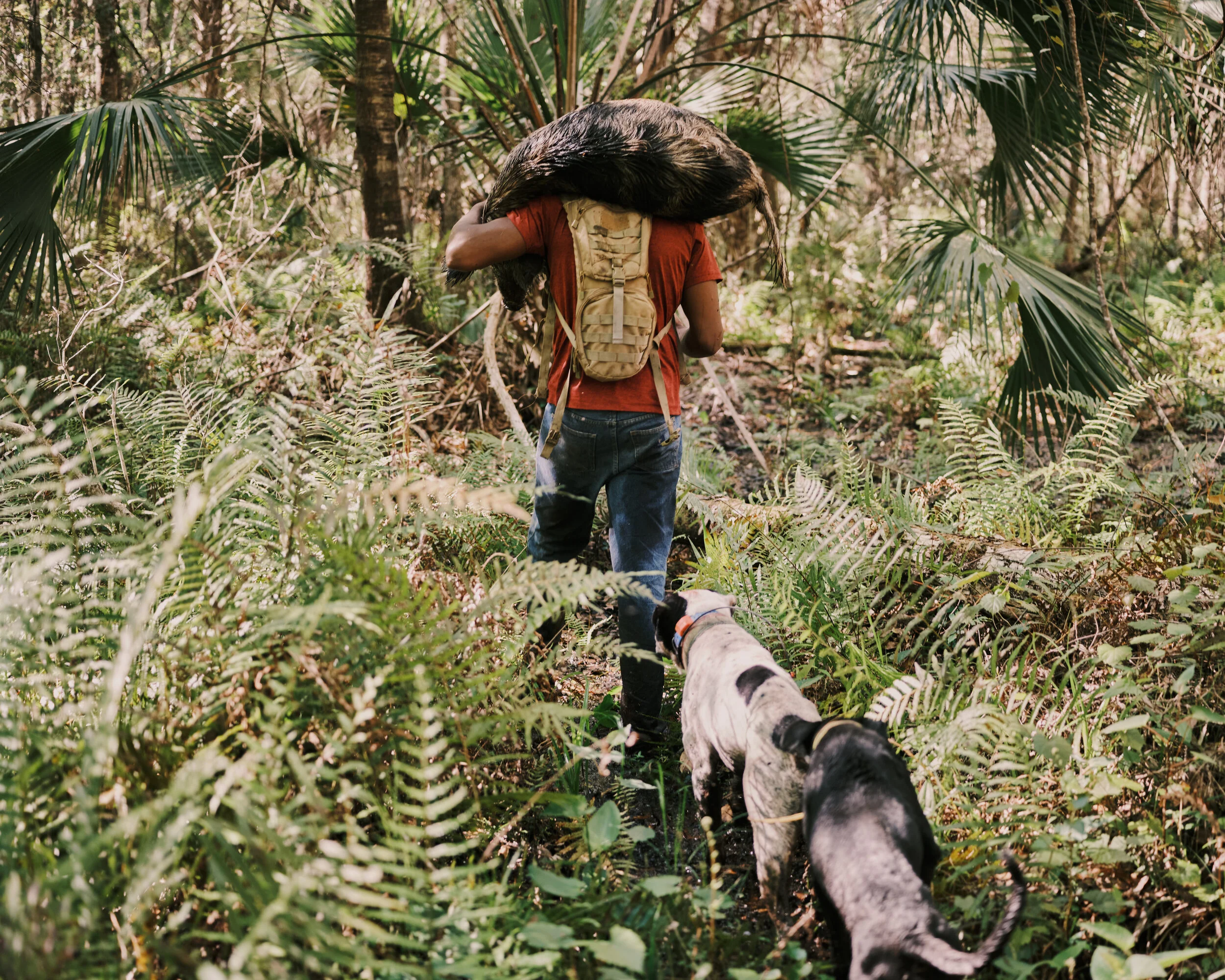 “Pompi, 26, unlatches the tailgate and opens the crates bolted to his truck bed, releasing four hunting dogs that run hell-for-leather into the marsh, disappearing behind a low curtain of palmetto trees. Barking erupts in a warped echo. “That’s our hog,” he says. “Bubba jumped him.”
